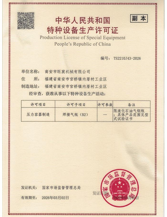 特種設備生產許可證